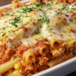 The recipe is intentionally forgiving. Cooking the pasta “just al dente” and finishing it in the oven prevents mushy noodles. Using a ladleful of sauce across the bottom of the dish keeps the pasta from sticking and reduces scorching. Those small structural moves yield a casserole that reheats well and slices cleanly.